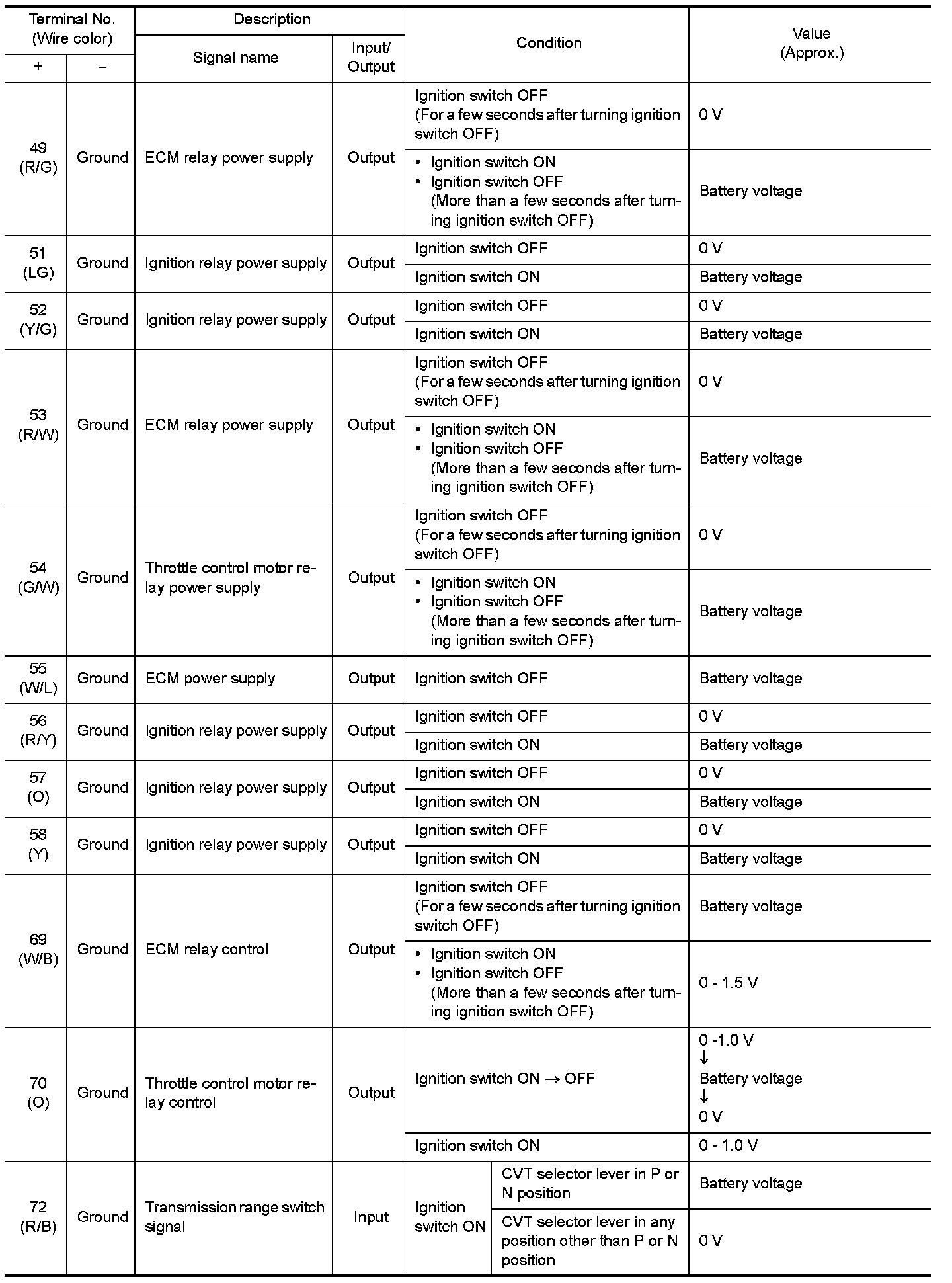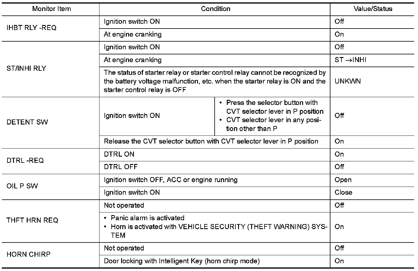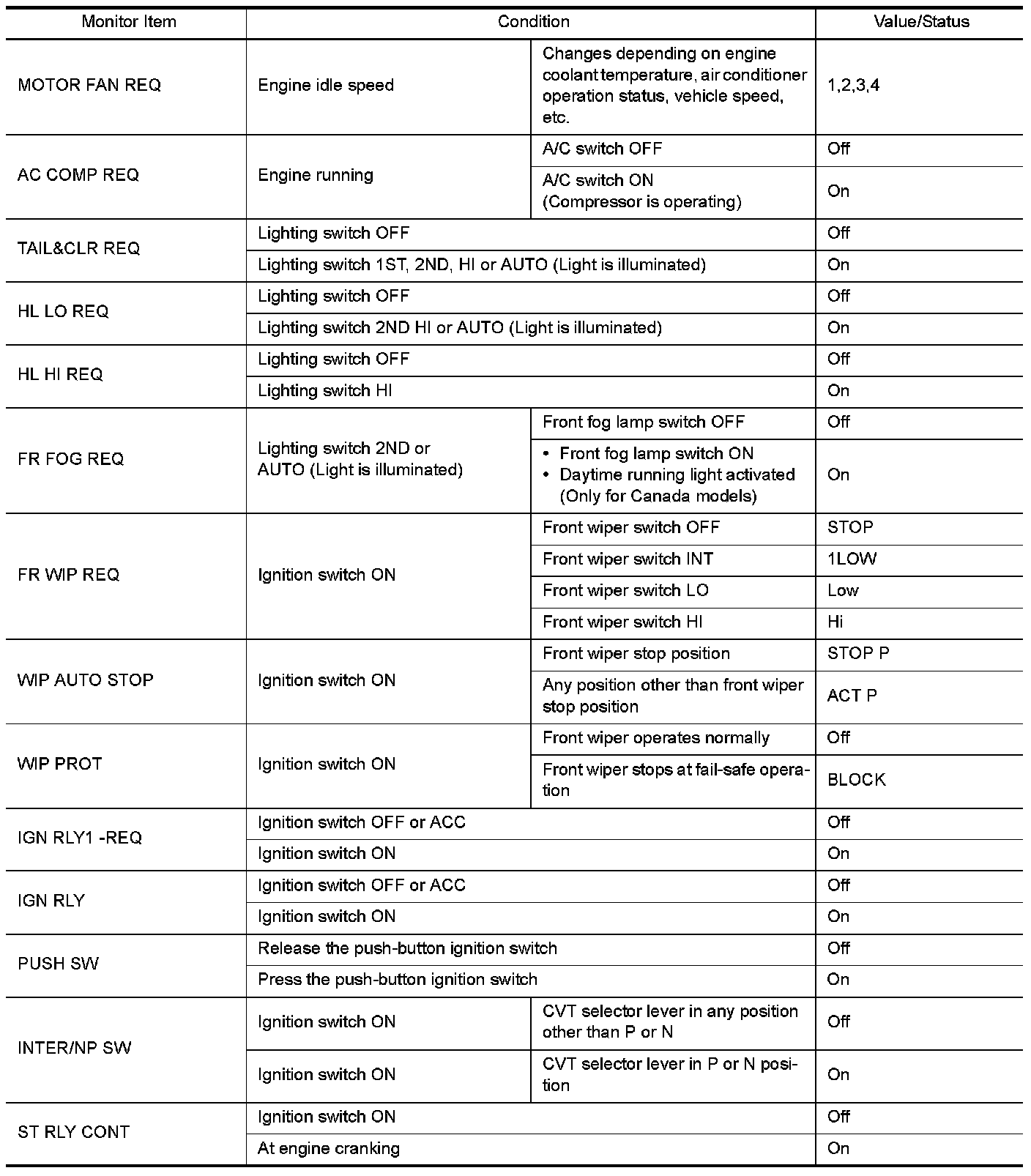 Pinout Values and Diagnostic Parameters