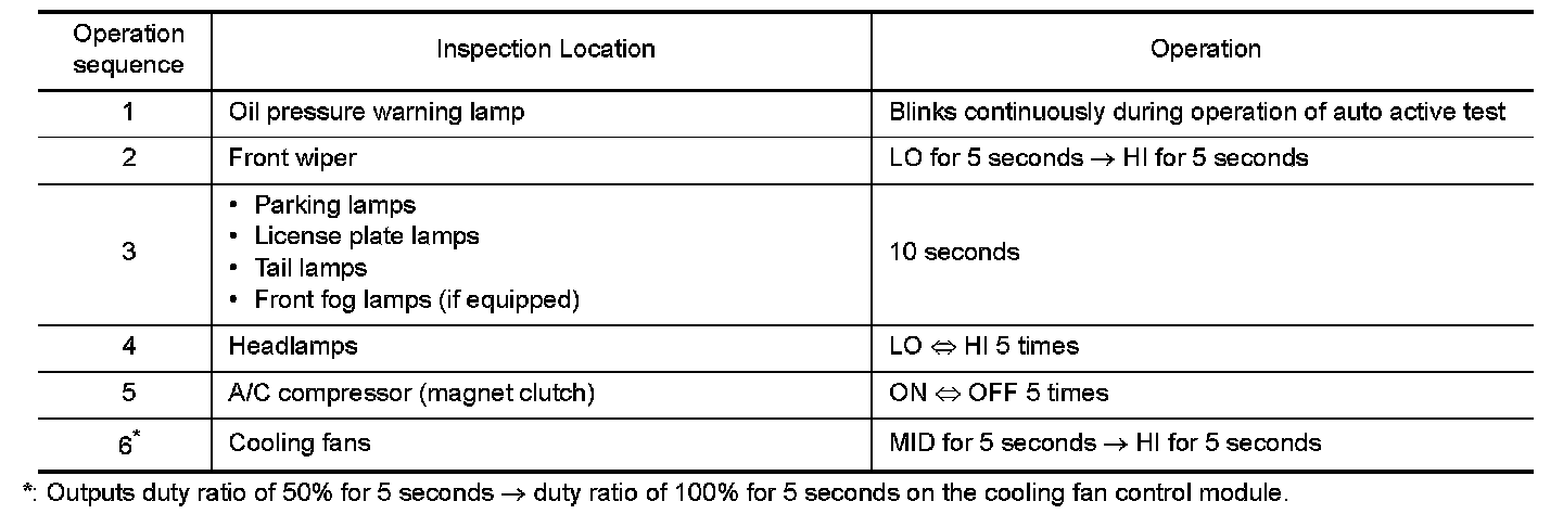 5.The oil pressure warning lamp starts blinking when the auto active test starts.