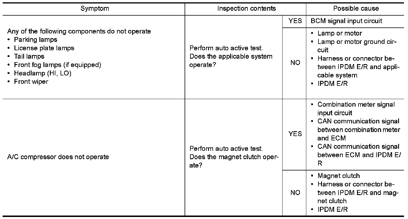 - The auto active test facilitates troubleshooting if any systems controlled by IPDM E/R cannot be operated.