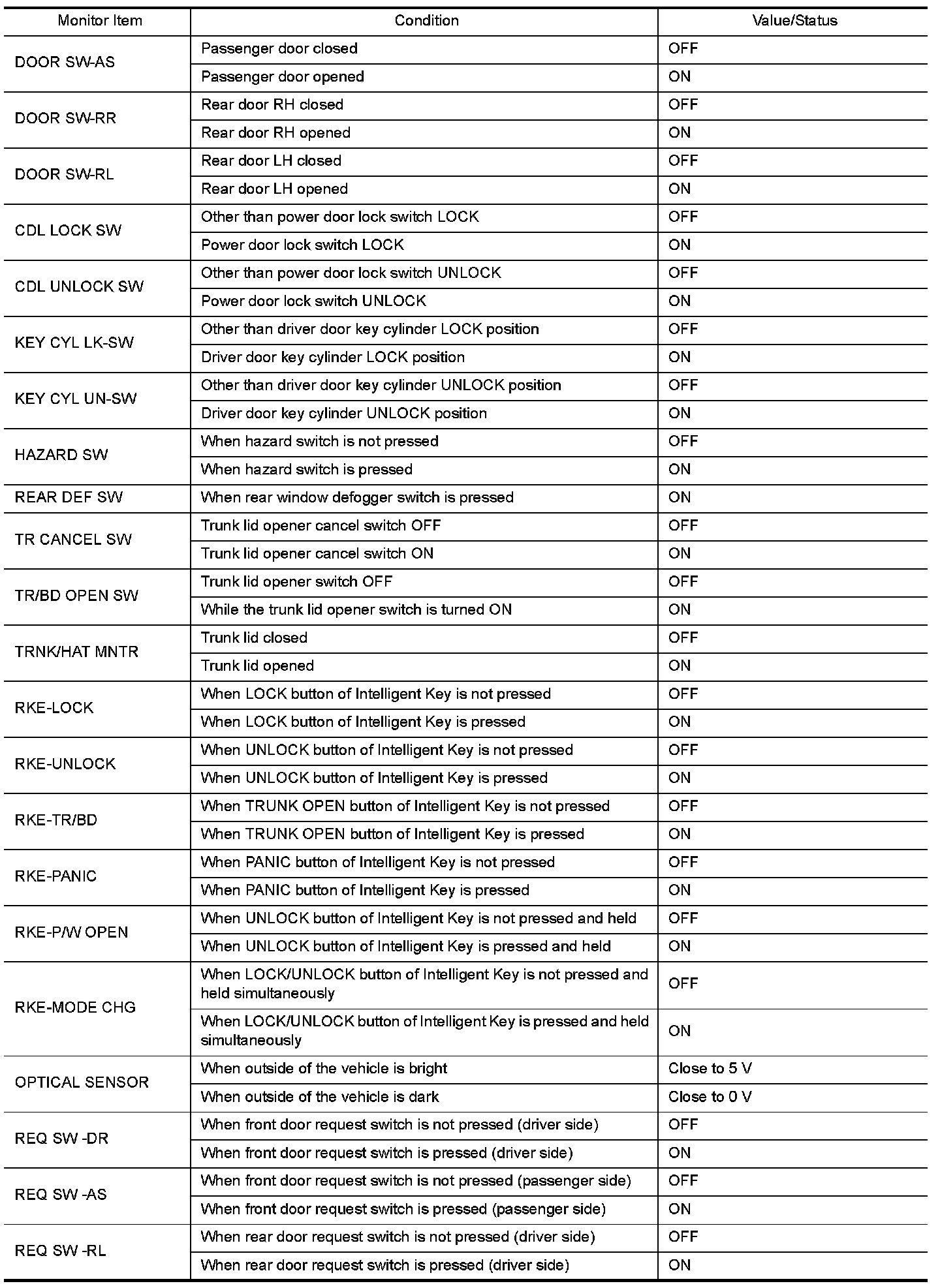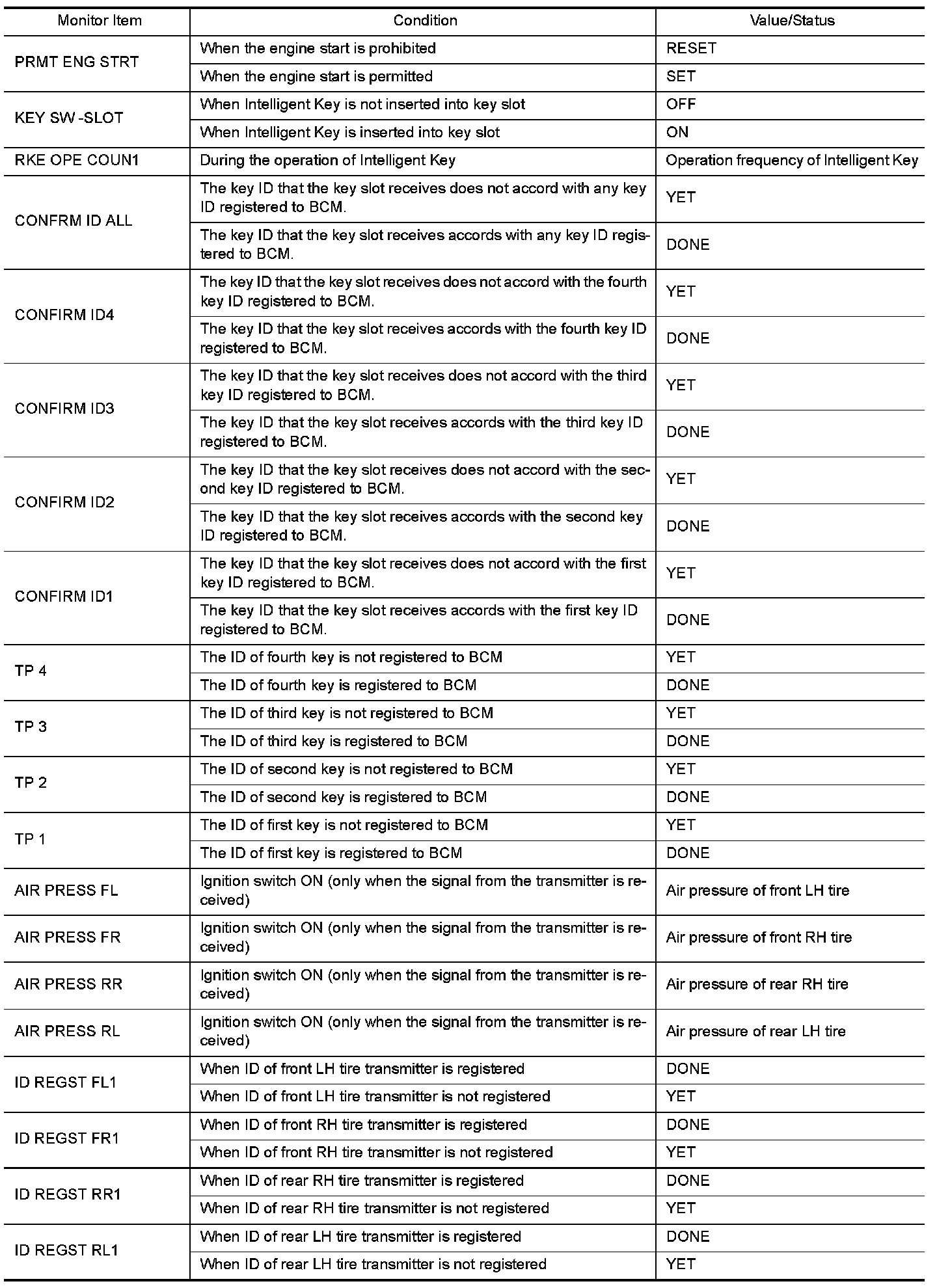 - Check Intelligent Key relative signal strength
