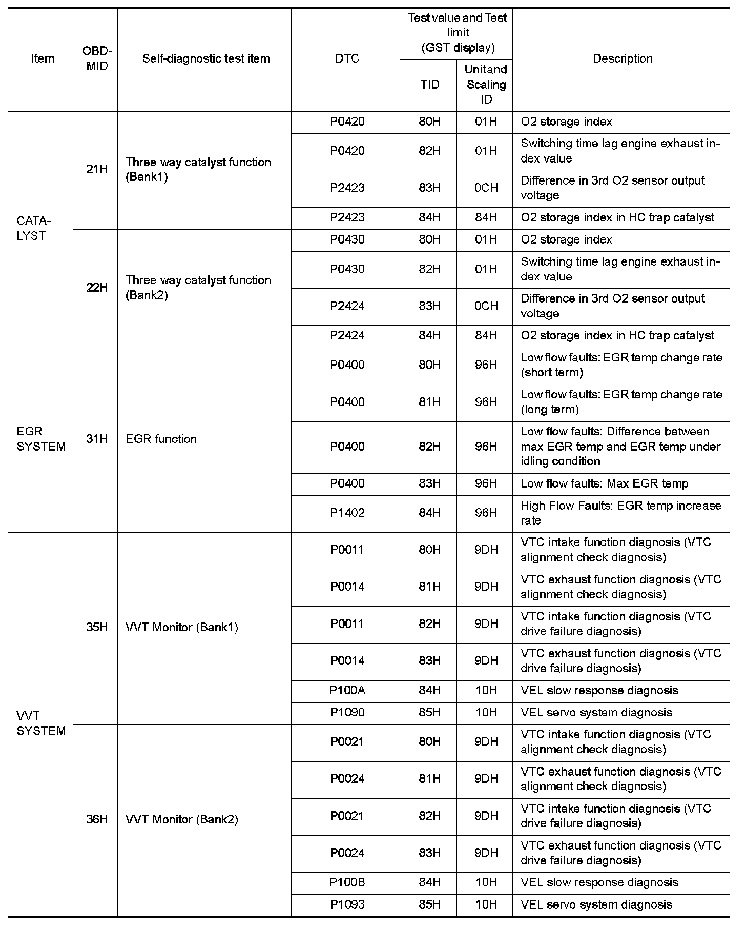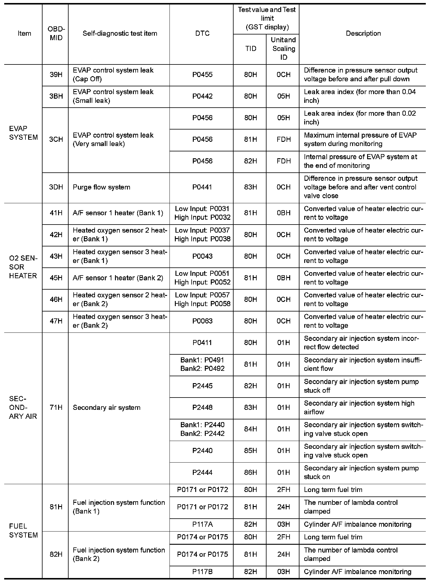 These data (test value and test limit) are specified by On Board Monitor ID (OBDMID), Test ID (TID), Unit and