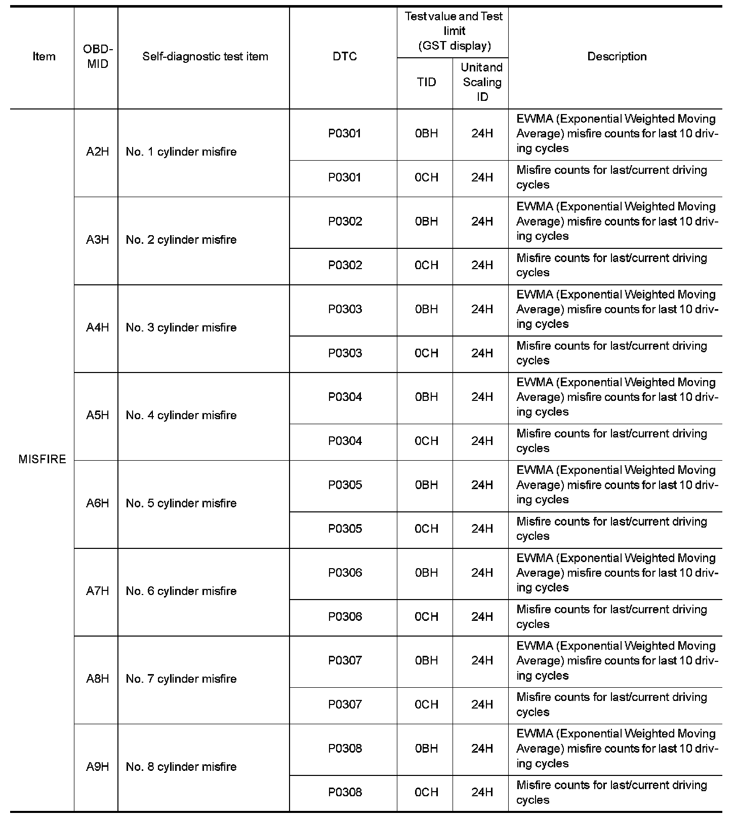 The following is the information specified in Service $06 of SAE J1979/ISO 15031-5.