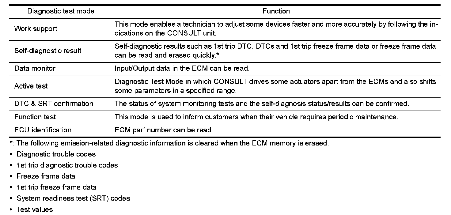Permanent DTCs stored in ECM memory are displayed on the CONSULT screen to show if a driving pattern required for erasing permanent DTCs is complete (CMPLT) or incomplete (INCMP).