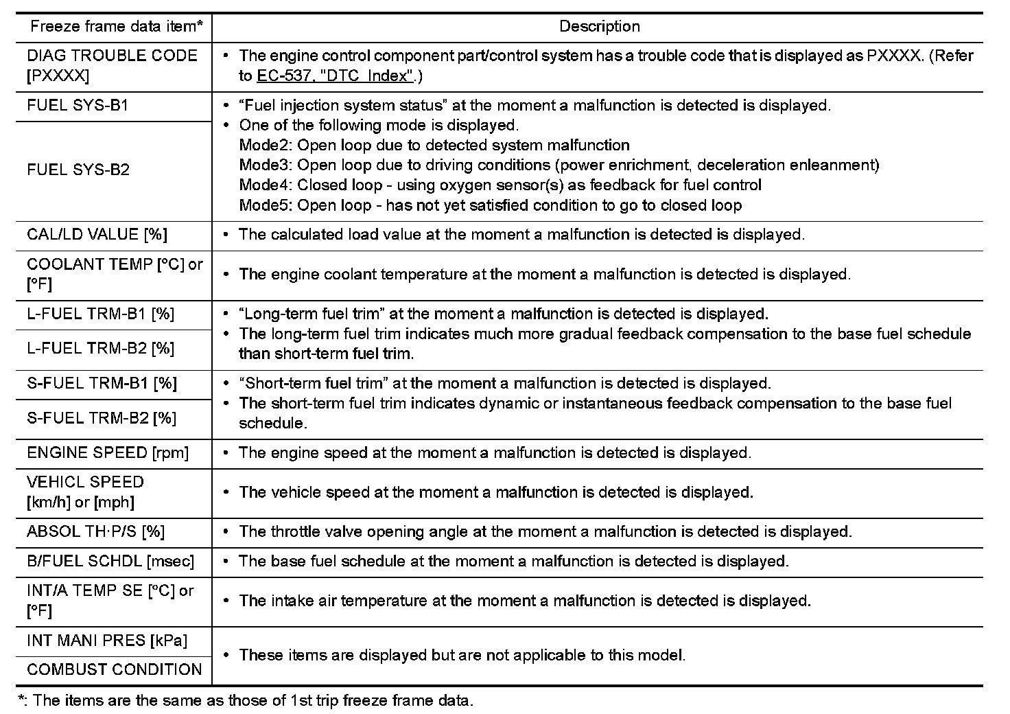 Freeze Frame Data and 1st Trip Freeze Frame Data