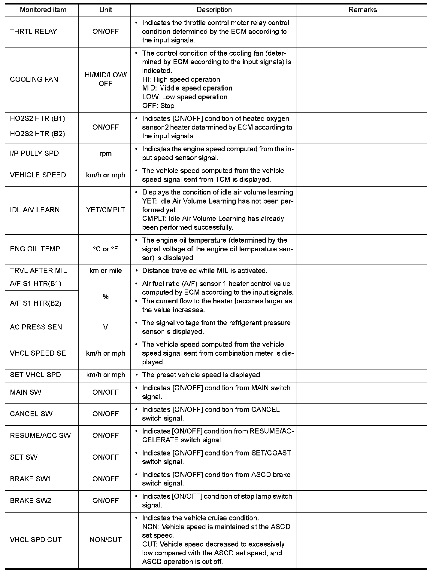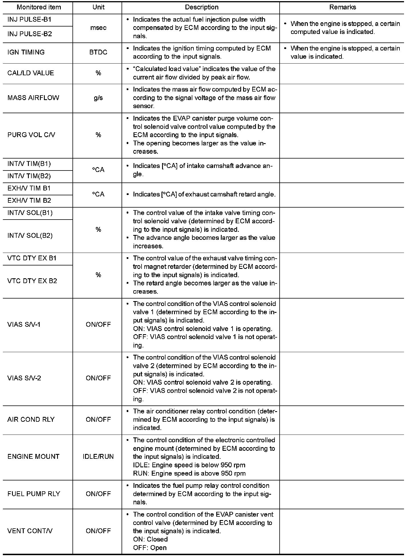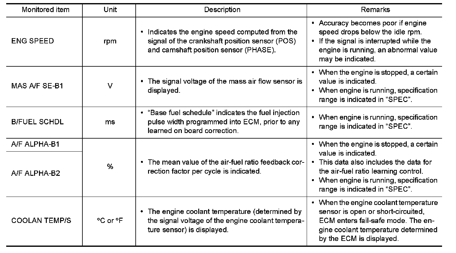 - If "TIME" is neither "0" nor "1t", the DTC occurred in the past and ECM shows the number of times the vehicle has been driven since the last detection of the DTC.