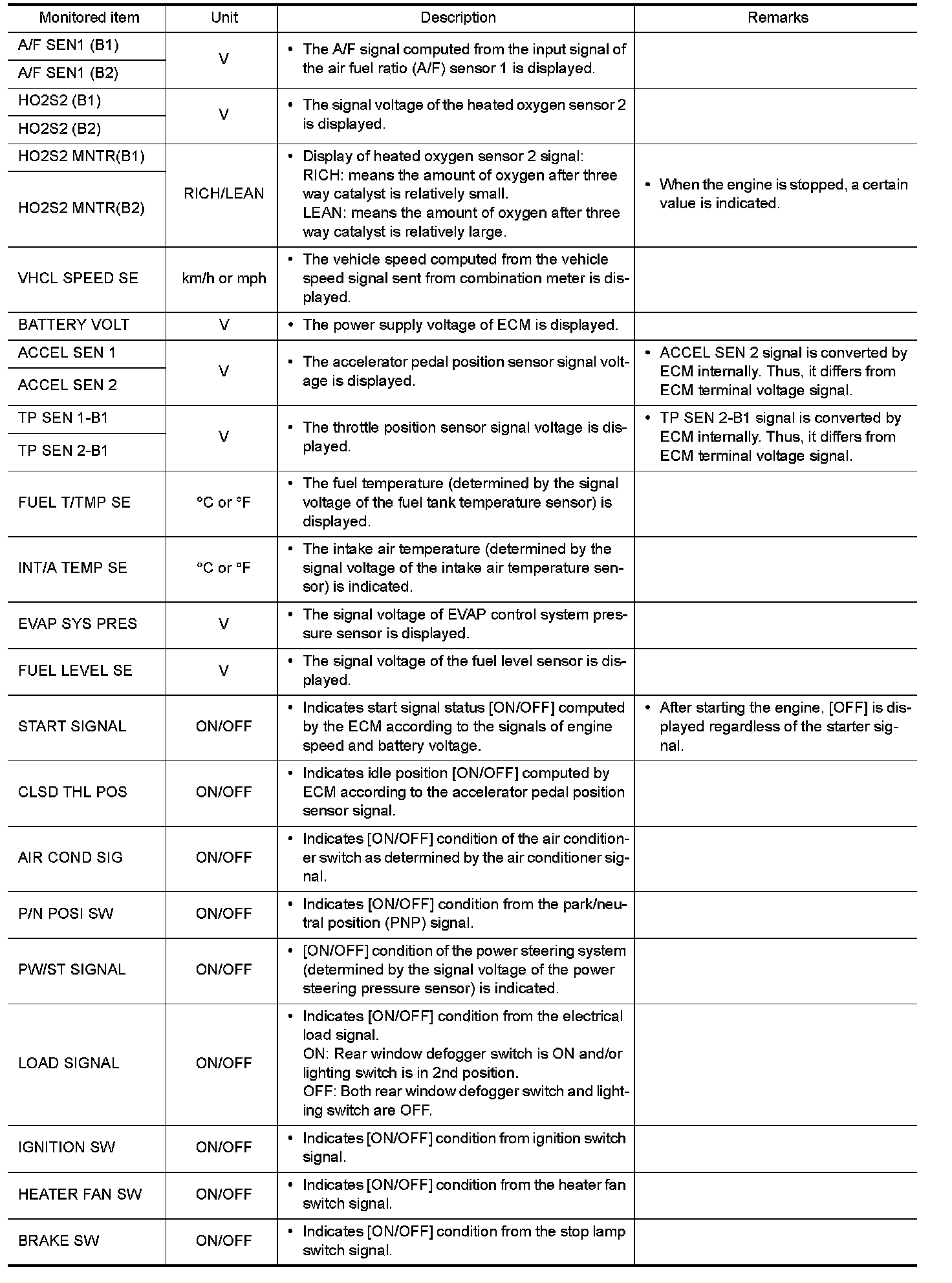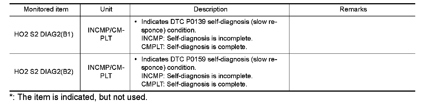 Any monitored item that does not match the vehicle being diagnosed is deleted from the display automatically.