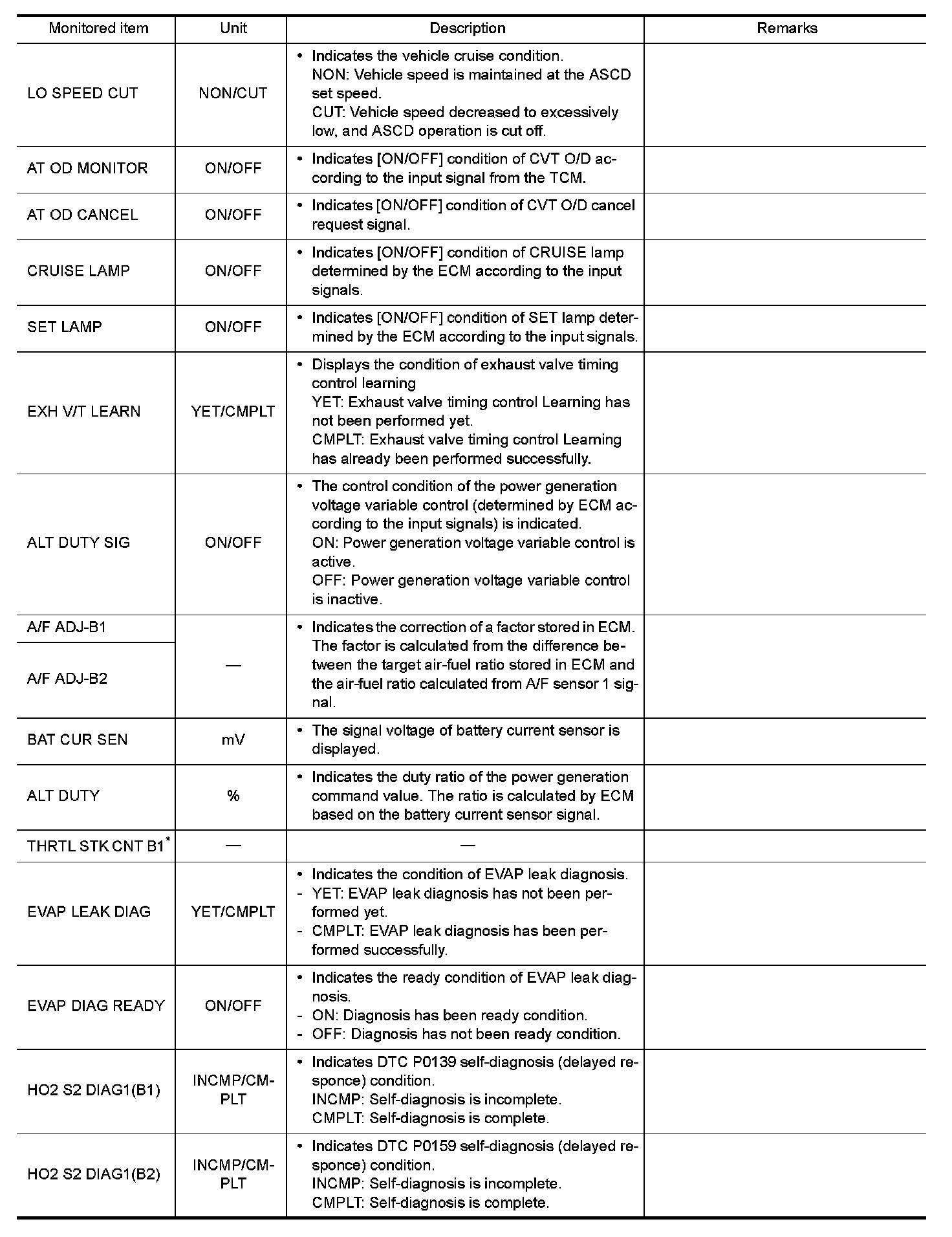 - For items whose SRT codes are set, "CMPLT" is displayed on the CONSULT screen; for items whose SRT