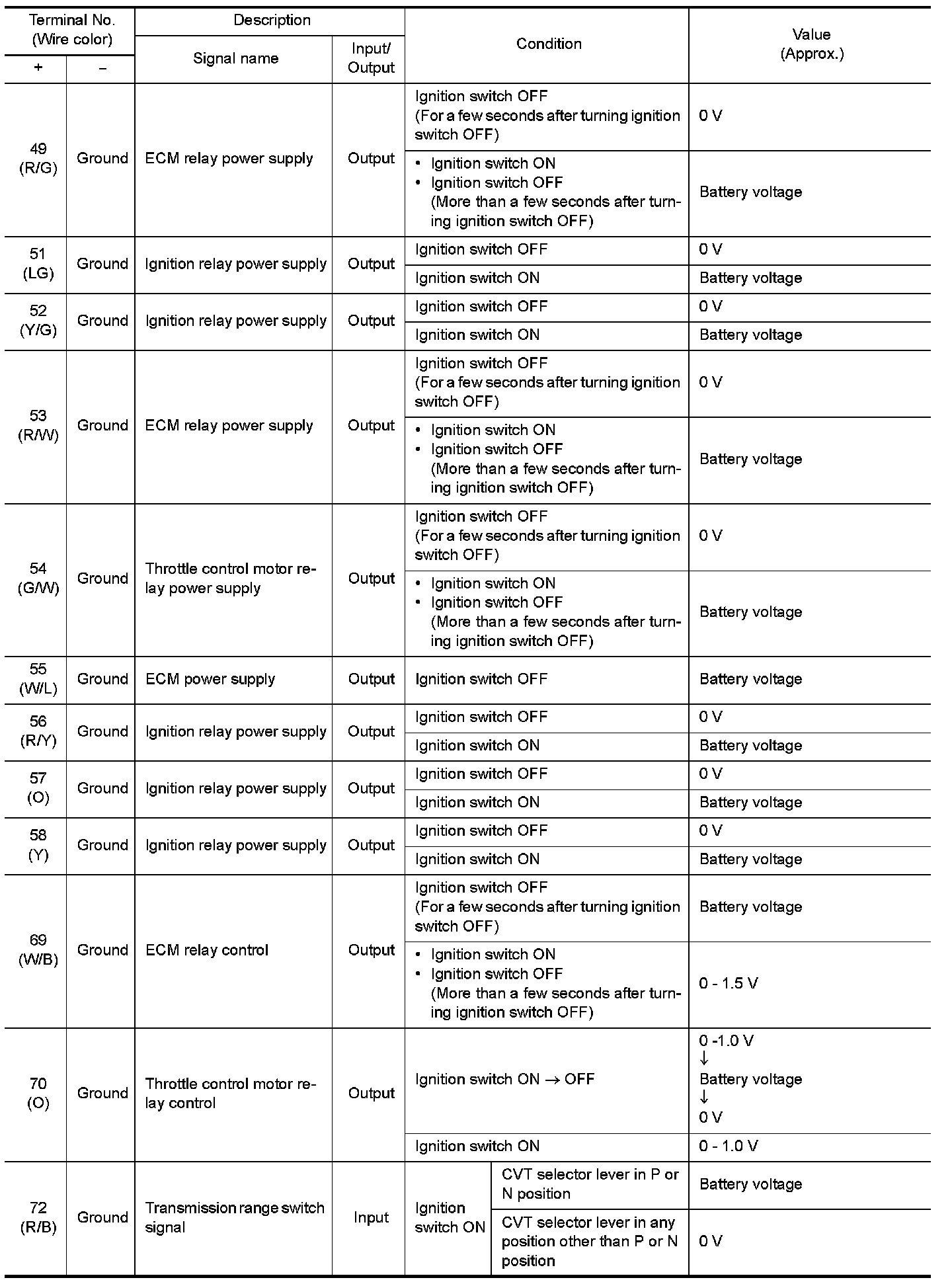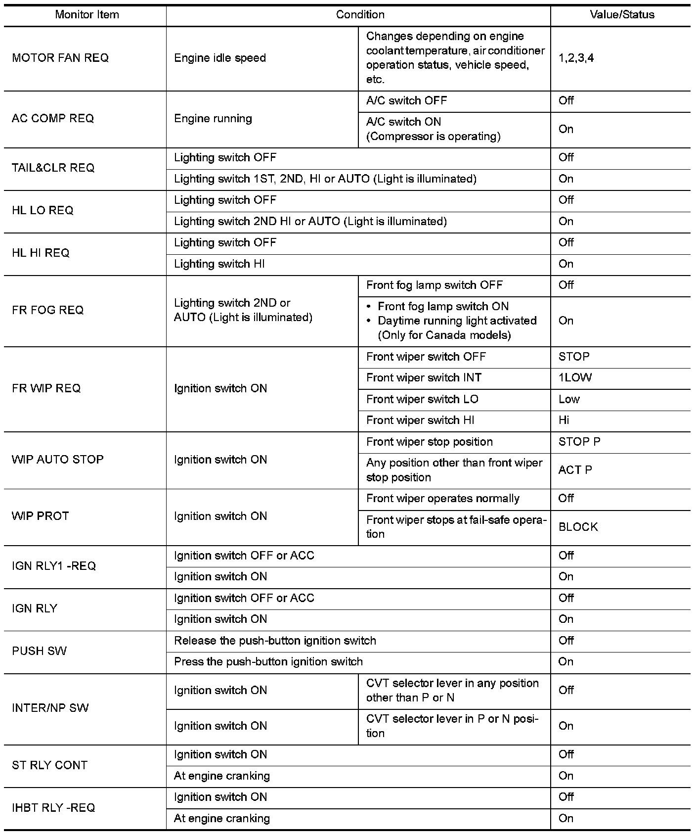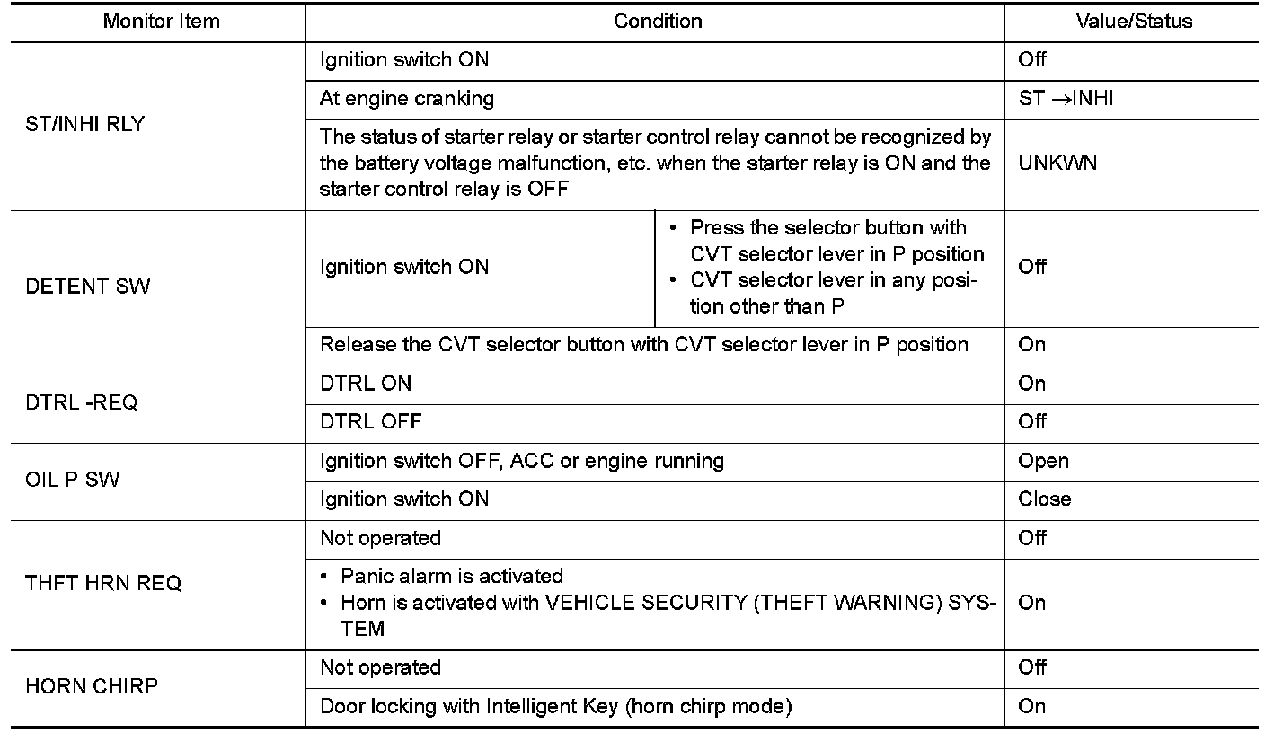 Pinout Values and Diagnostic Parameters