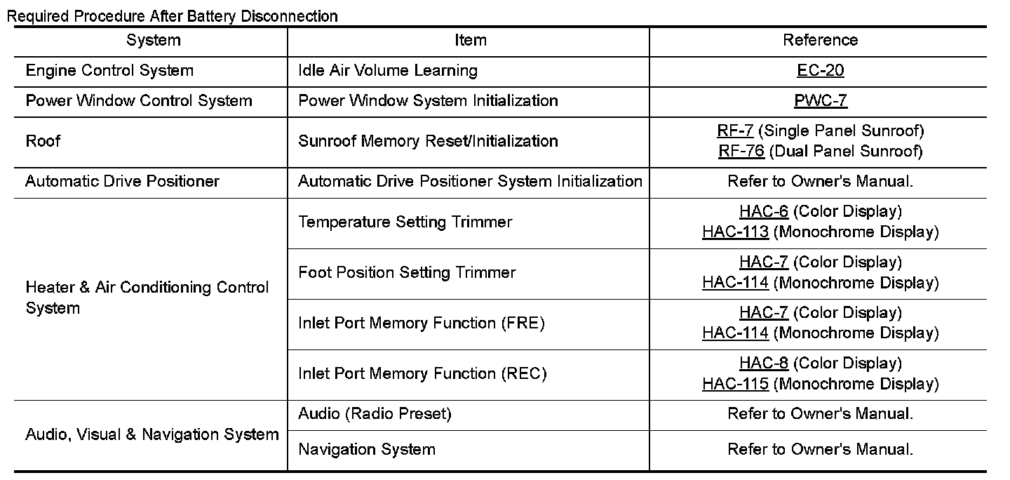 ADDITIONAL SERVICE WHEN REMOVING BATTERY NEGATIVE TERMINAL : Special Repair Requirement