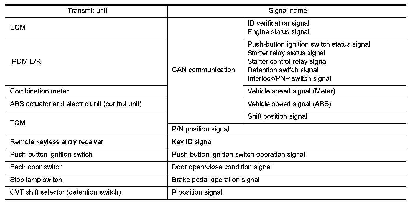 Intelligent Key System for any functions other than engine start function of Intelligent Key system.
