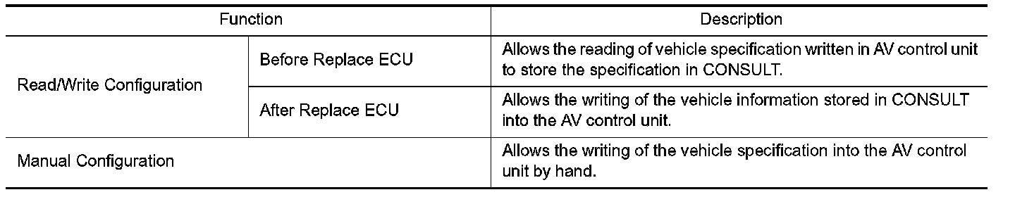 CONFIGURATION (AV CONTROL UNIT)Description - Since vehicle specifications are not included in the AV