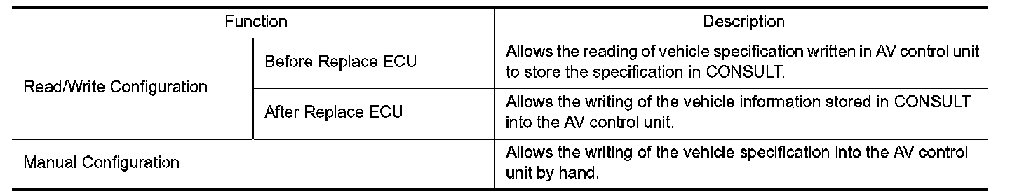 CONFIGURATION (AV CONTROL UNIT)Description - Since vehicle specifications are not included in the AV