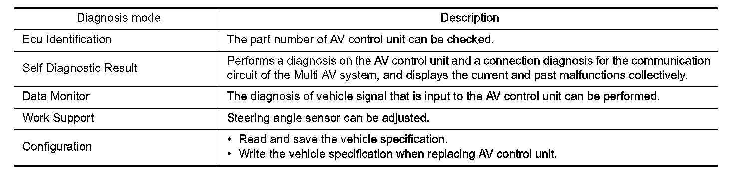 DIAGNOSIS SYSTEM (AV CONTROL UNIT)
