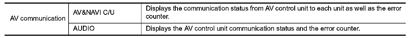 When "AV communication" of "CAN Diag Support Monitor" is selected, the following function will be performed.