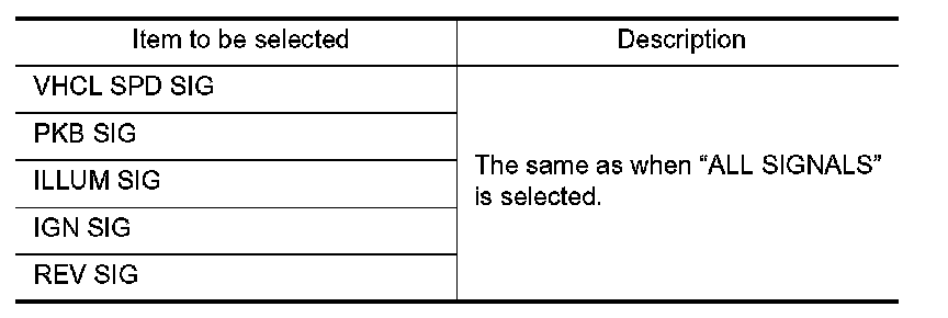 Allows the technician to select which vehicle signals should be displayed and displays the status of the selected vehicle signals.
