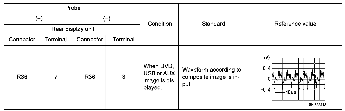 3.Check signal between rear display unit harness connector.