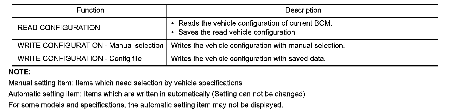 - Never perform "WRITE CONFIGURATION" except for new BCM.