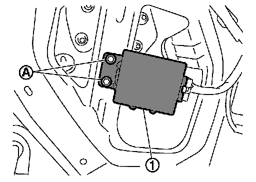 2.Remove the back door control unit mounting bolt (A), and then remove the back door control unit (1).
