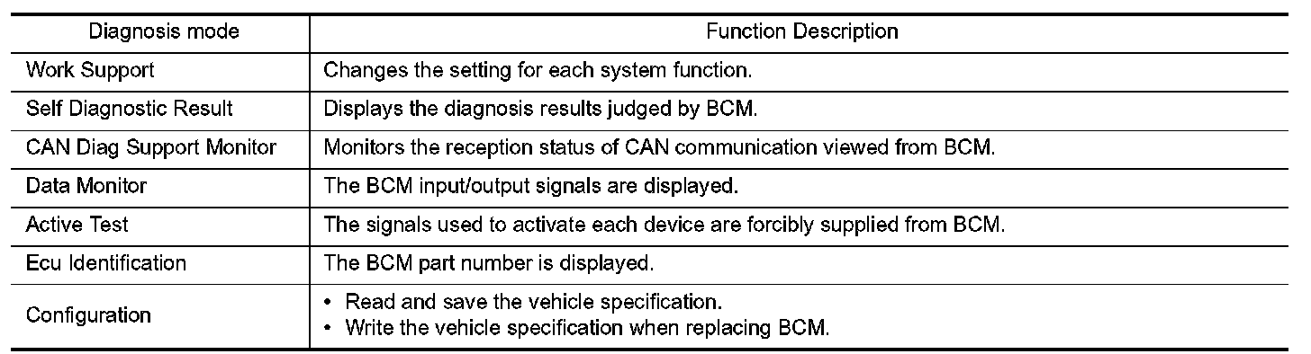 CONSULT performs the following functions via CAN communication with BCM.