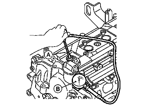 7.Install a suitable compression tester (B) with an adapter (A) onto spark plug hole.