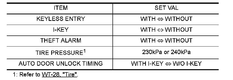 Depending on CONSULT software version being used, some or all of the write configuration items shown in the following configuration lists may be displayed. If an item does not appear on the CONSULT WRITE