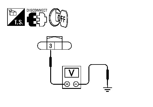 2.Check voltage between front door request switch harness connector D4 (LH), D103 (RH) terminal 3 and ground.
