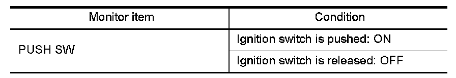Display "PUSH SW" on DATA MONITOR screen, and check if ON/OFF display is linked to ignition switch operation.