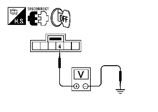 3.Check voltage between key switch and ignition knob switch harness connector M49 terminal 4 and ground.