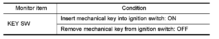 Check key switch ("KEY SW") in "DATA MONITOR" mode with CONSULT.