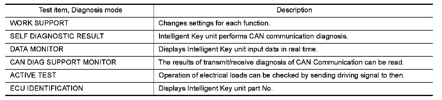 CONSULT can display each diagnostic item using the diagnostic test modes as shown below.