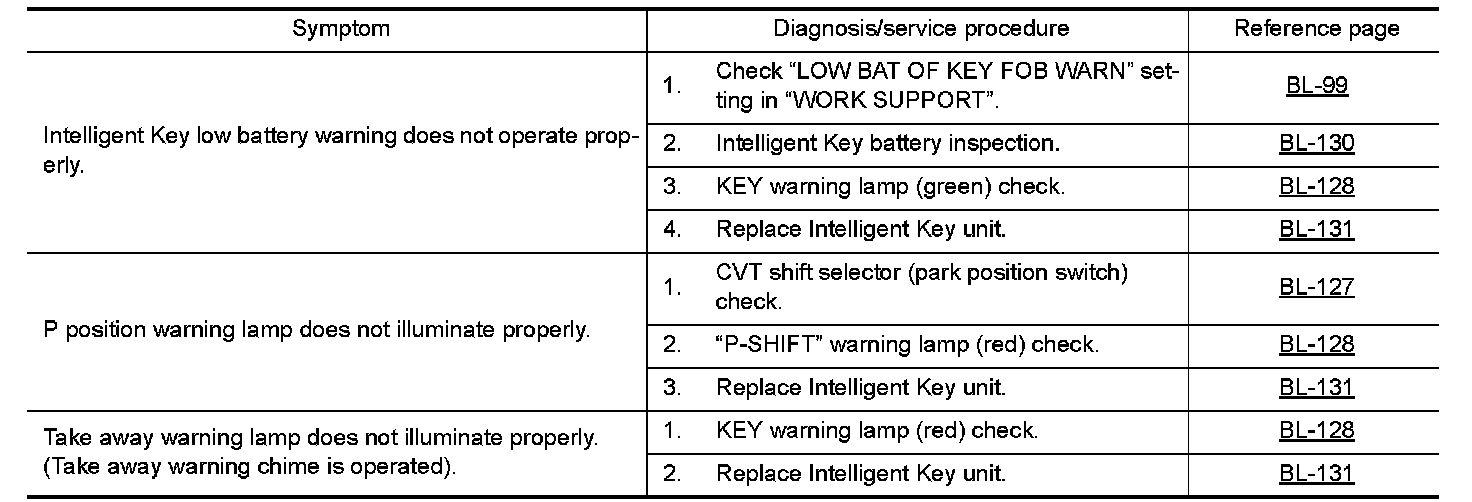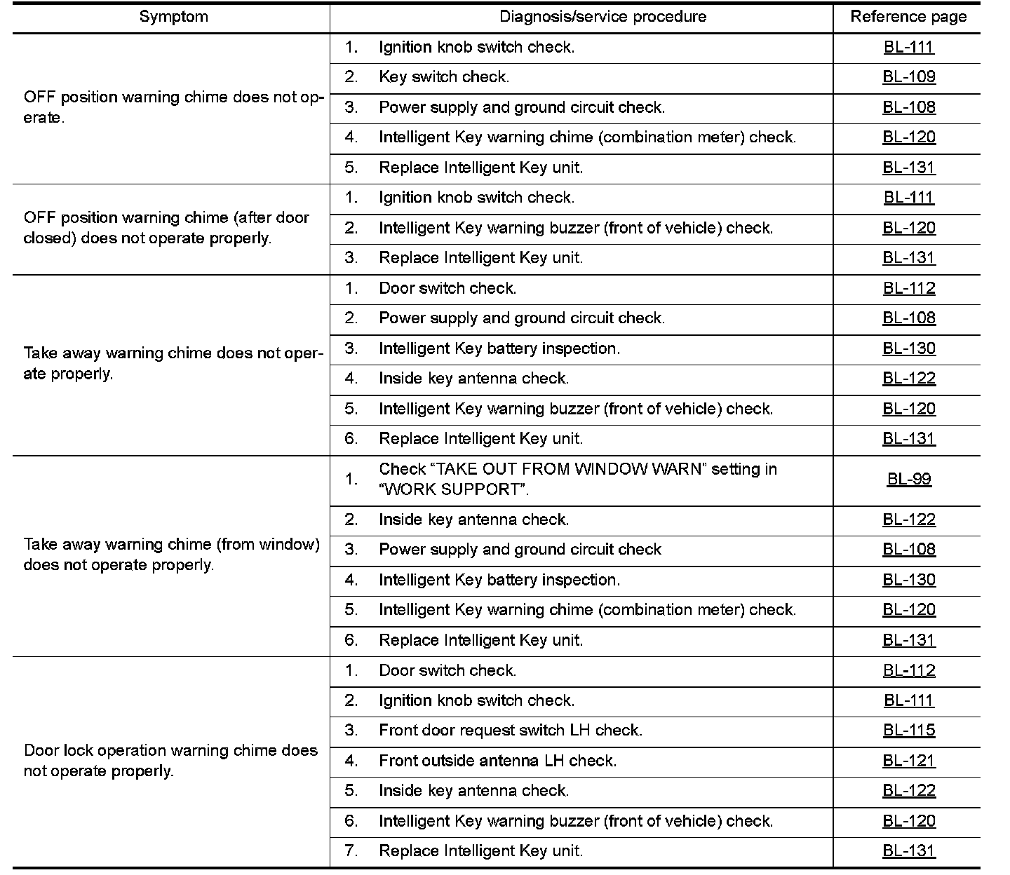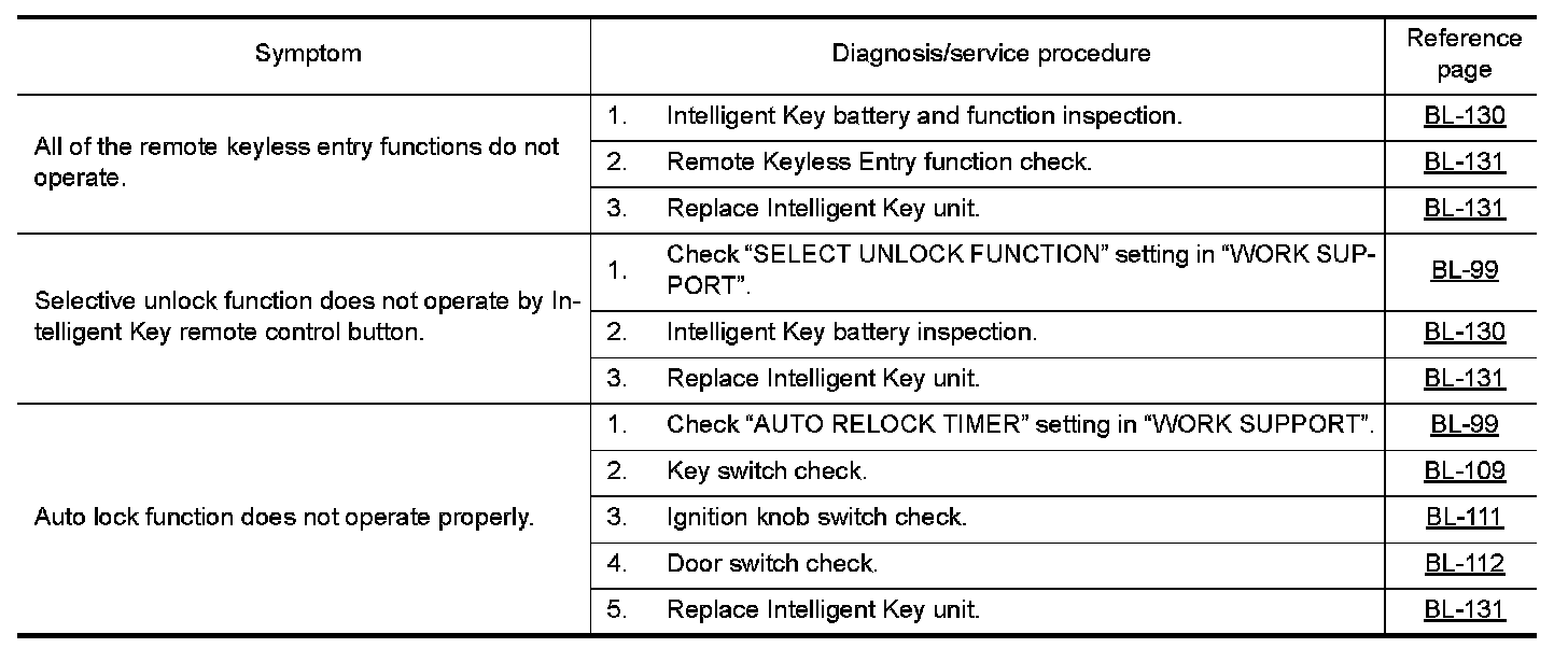 - Before performing the diagnosis in the following table, check "Trouble Diagnosis Procedure". Trouble Diagnosis Procedure .
