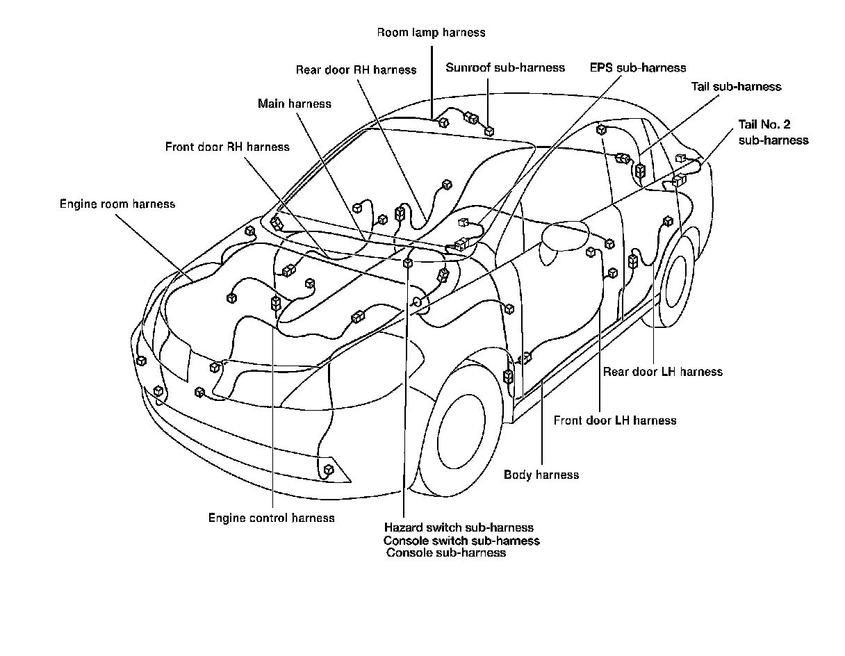 - Main Harness, Hazard Switch Sub-harness, Console Switch Subharness and Console Sub-harness