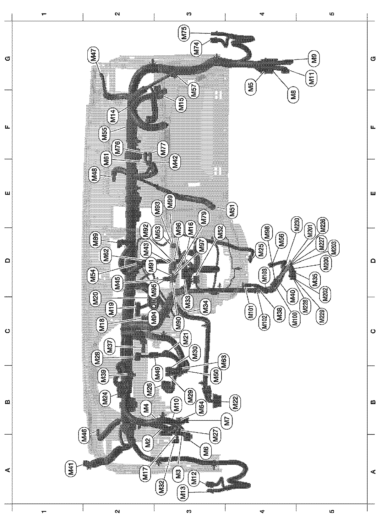 The following Harness Layouts use a map style grid to help locate connectors on the drawings: