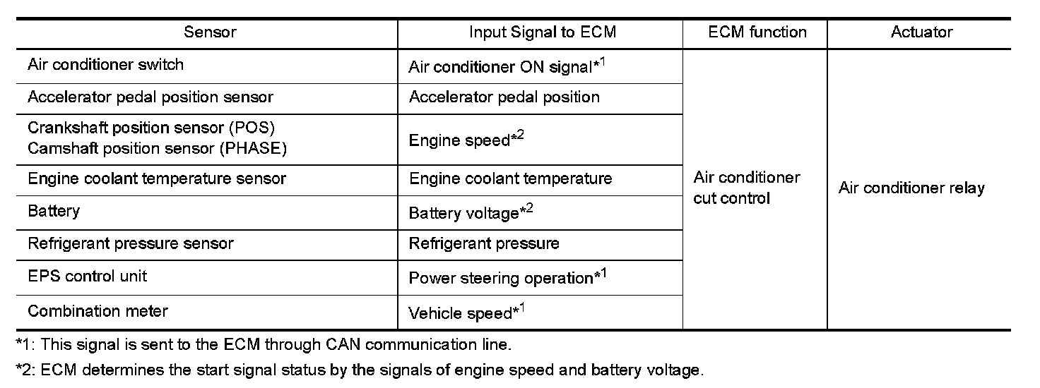 Input/Output Signal Chart Air Conditioning Cut Control