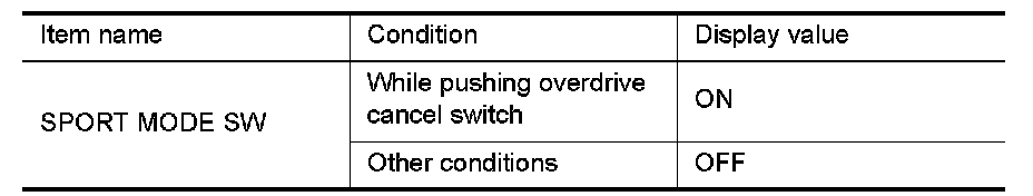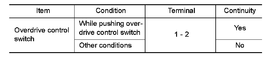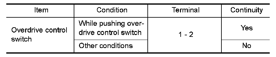 7. CHECK OVERDRIVE CONTROL SWITCH CIRCUIT WITHOUT INTELLIGENT KEY