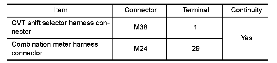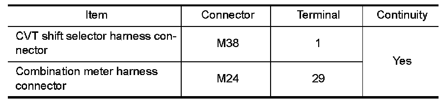 Check continuity between CVT shift selector terminals.