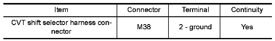 4.Check continuity between CVT shift selector harness connector terminal and ground.