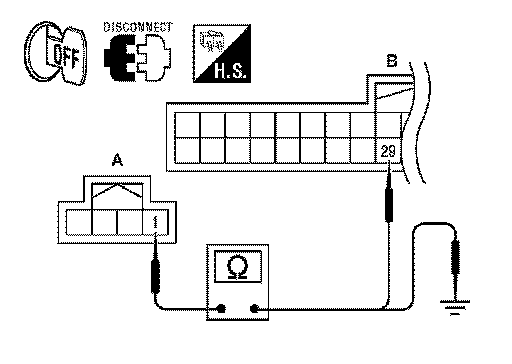 4.Check continuity between CVT shift selector harness connector (A) terminal and ground.