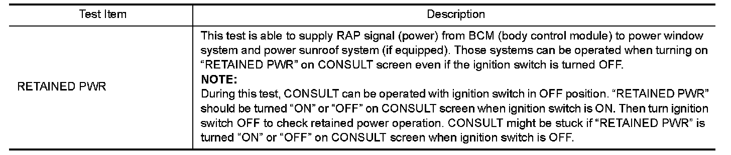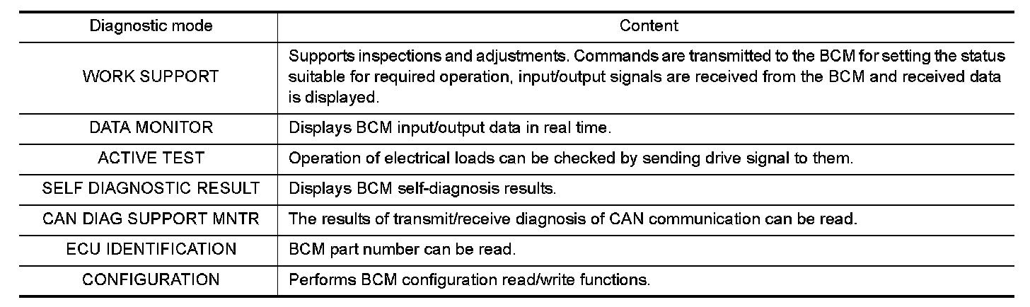 CONSULT can display each diagnostic item using the diagnostic test modes shown following.