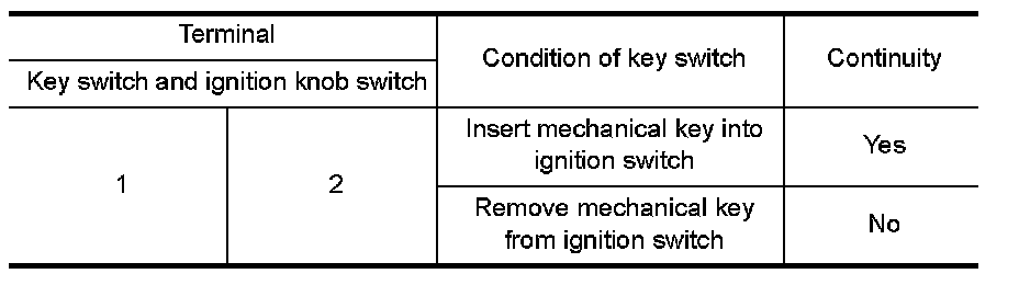 1. CHECK KEY SWITCH POWER SUPPLY CIRCUIT