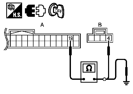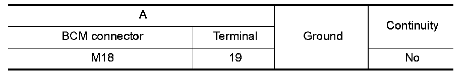 3.Check continuity between BCM connector (A) M18 terminal 19