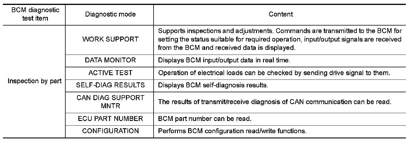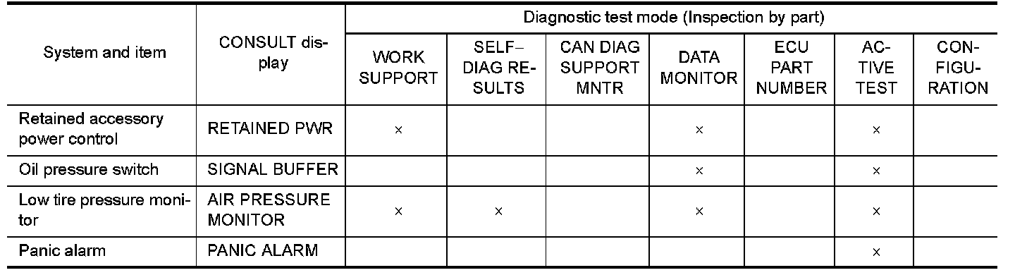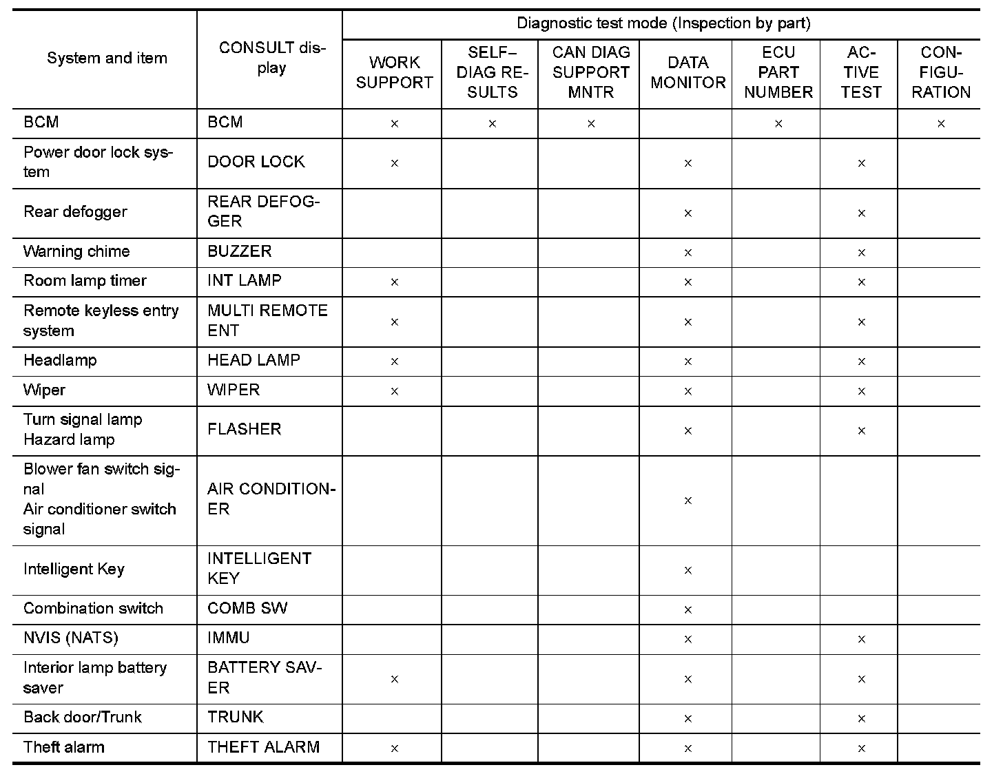 CONSULT can display each diagnostic item using the diagnostic test modes shown following.