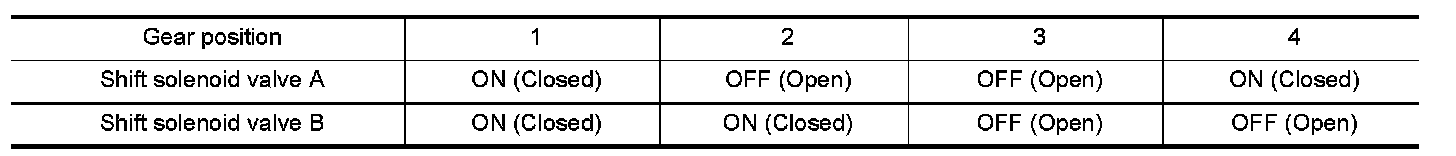 The TCM activates shift solenoid valves A and B according to signals from the accelerator pedal position sensor and output speed sensor to select the optimum gear position on the basis of the shift schedule memorized in the TCM.