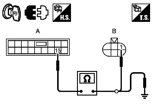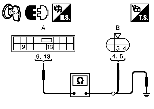 4.Check continuity between front power window motor LH connector (B) and ground.