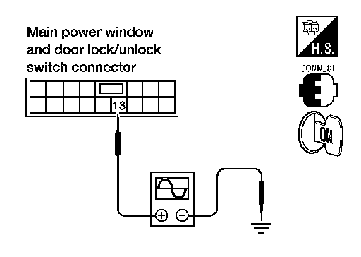 Check the signal between main power window and door lock/unlock switch connector and ground with oscilloscope.