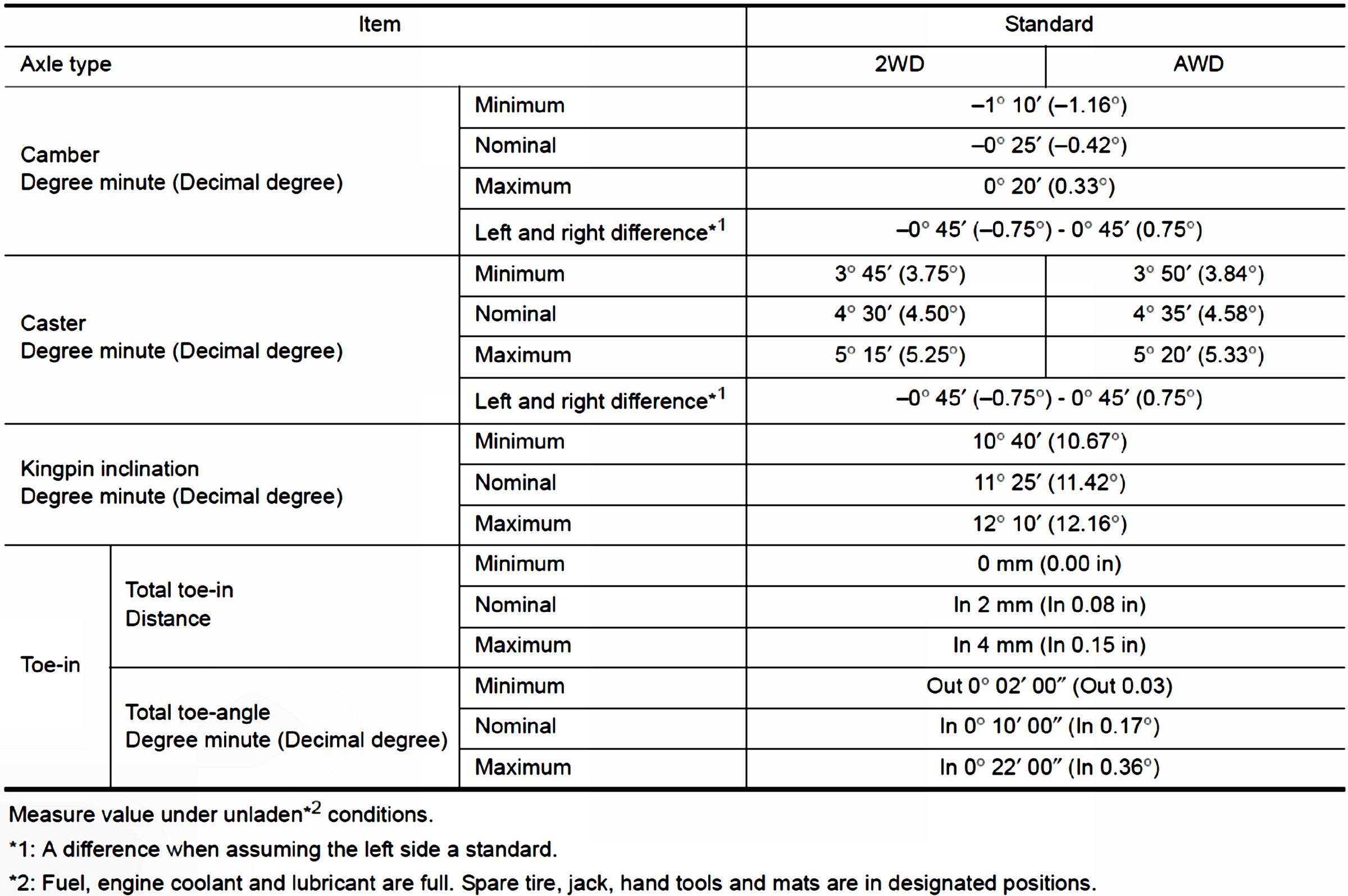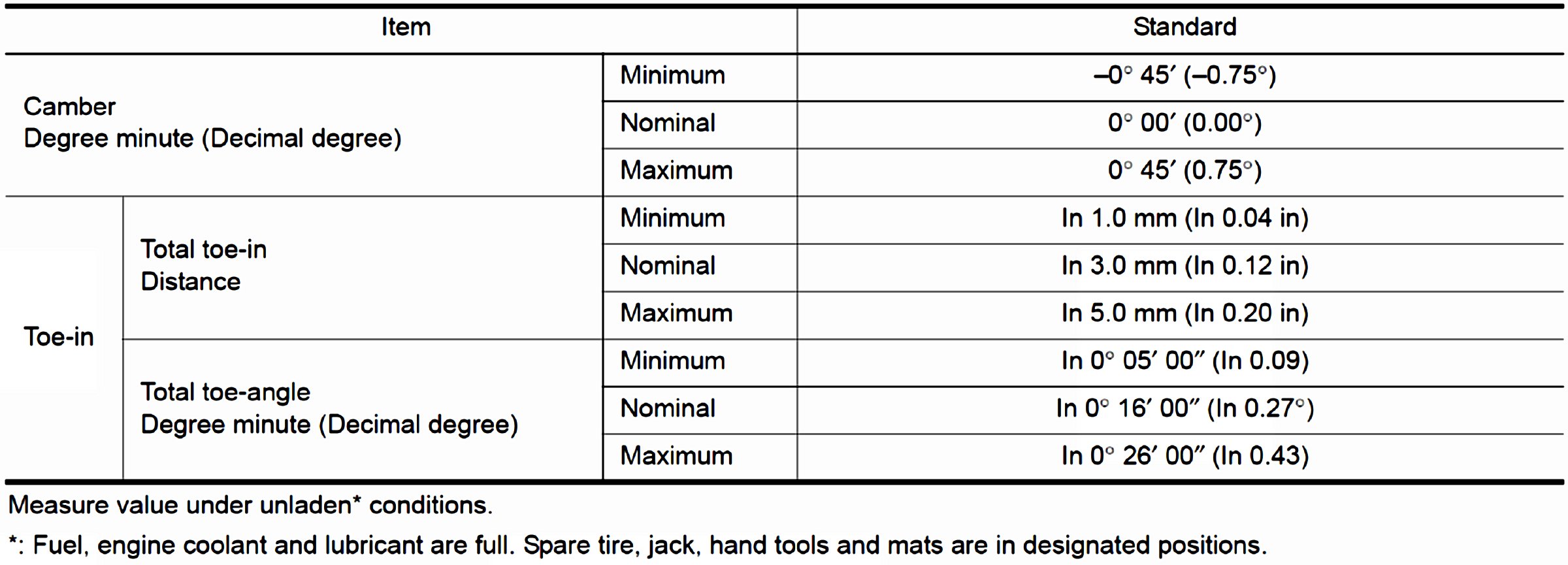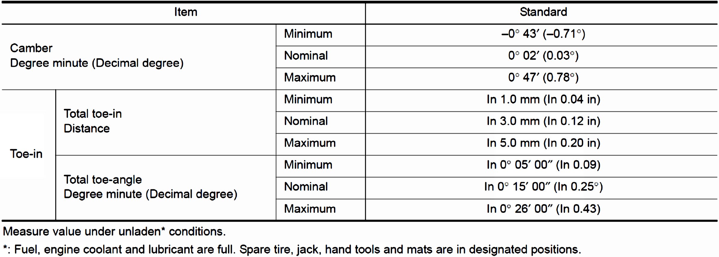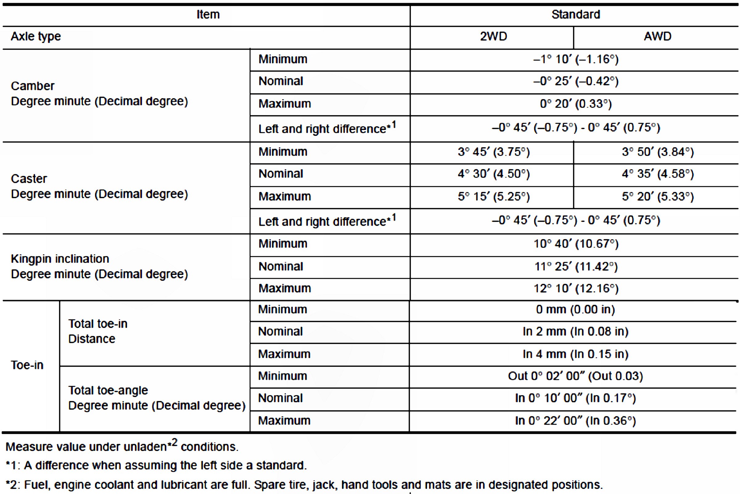 Wheel Alignment Specifications