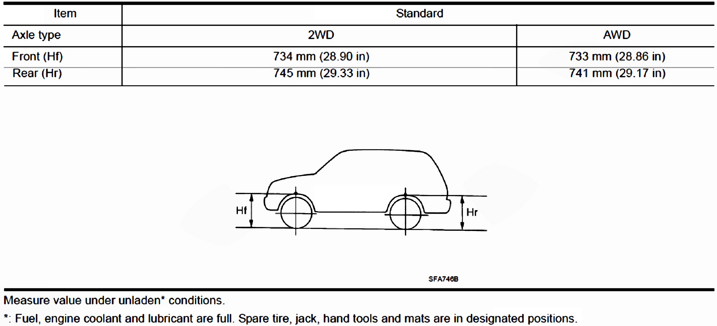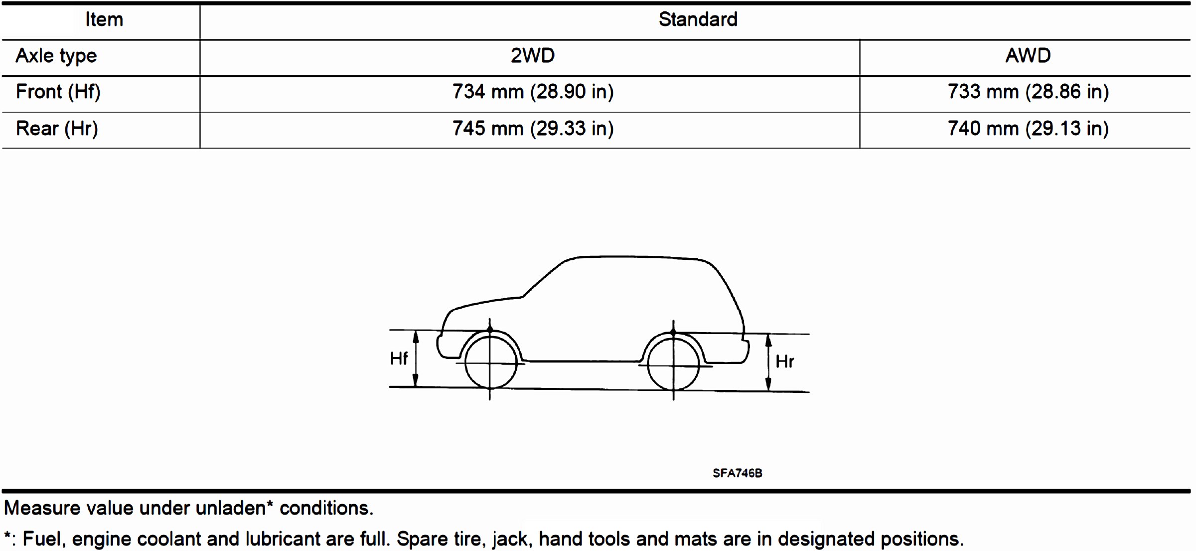 Wheelarch Height USA Models: