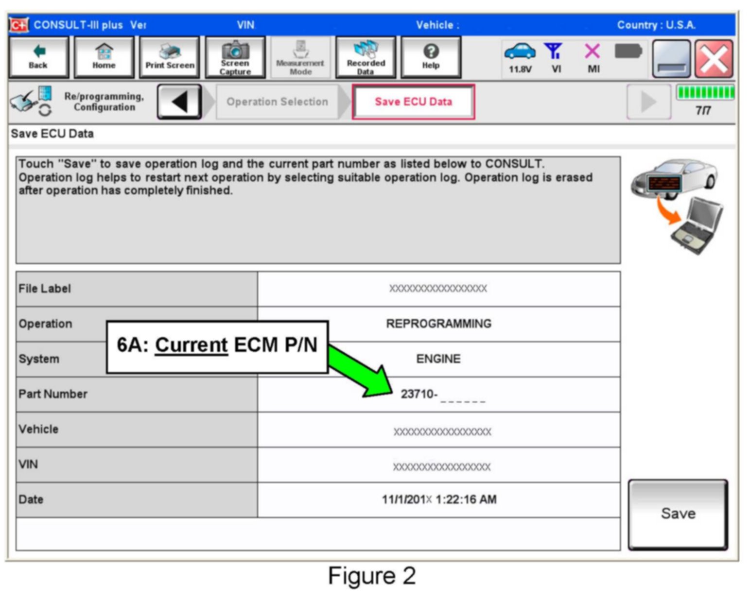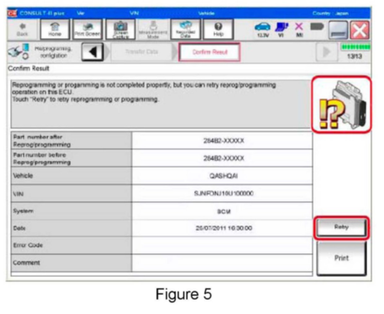 ^ If you are not familiar with the reprogramming procedure refer to CONSULT-III plus (C-III plus) ECM Reprogramming" general procedure.