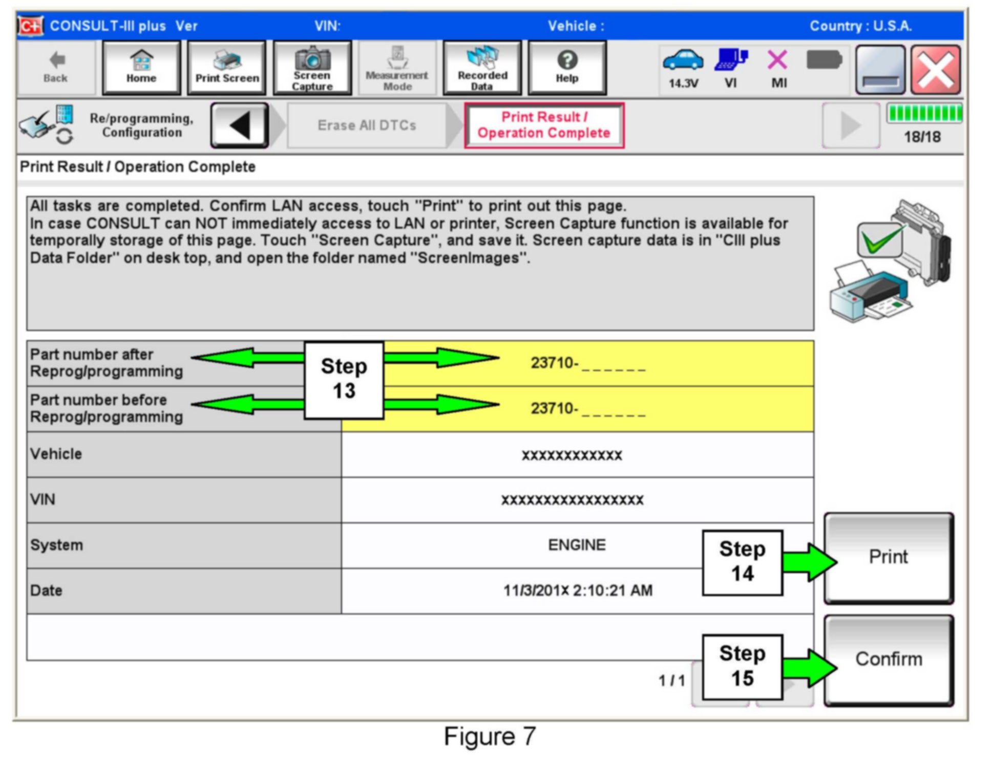 14. Print a copy of this screen (Figure 7) and attach it to the repair order for warranty documentation.