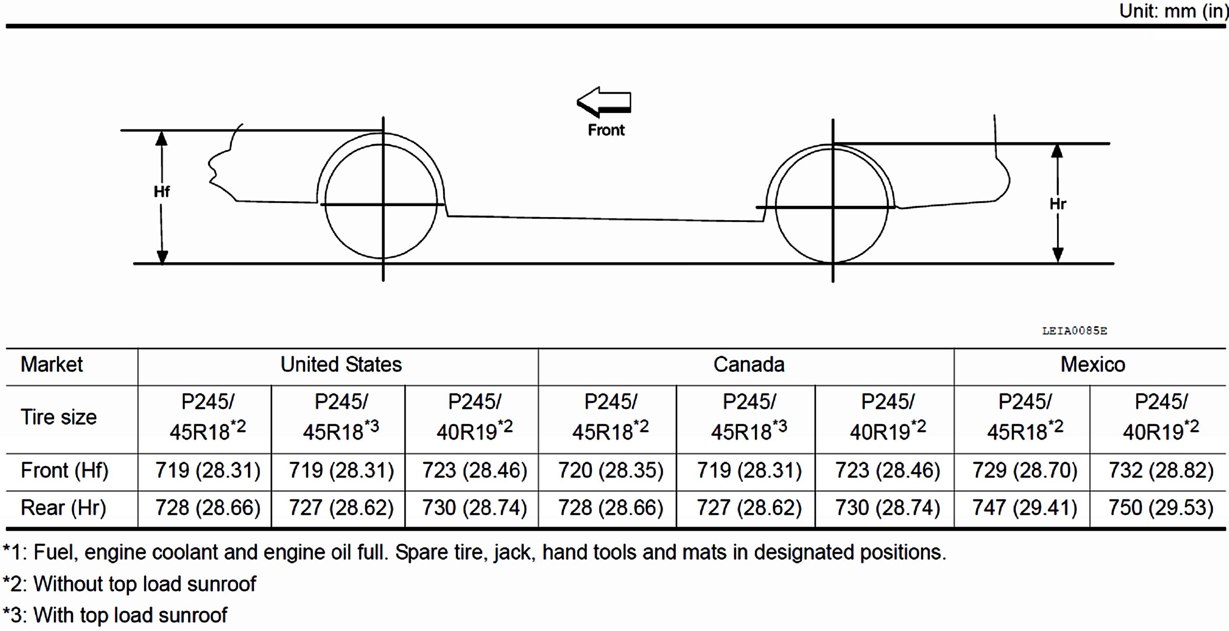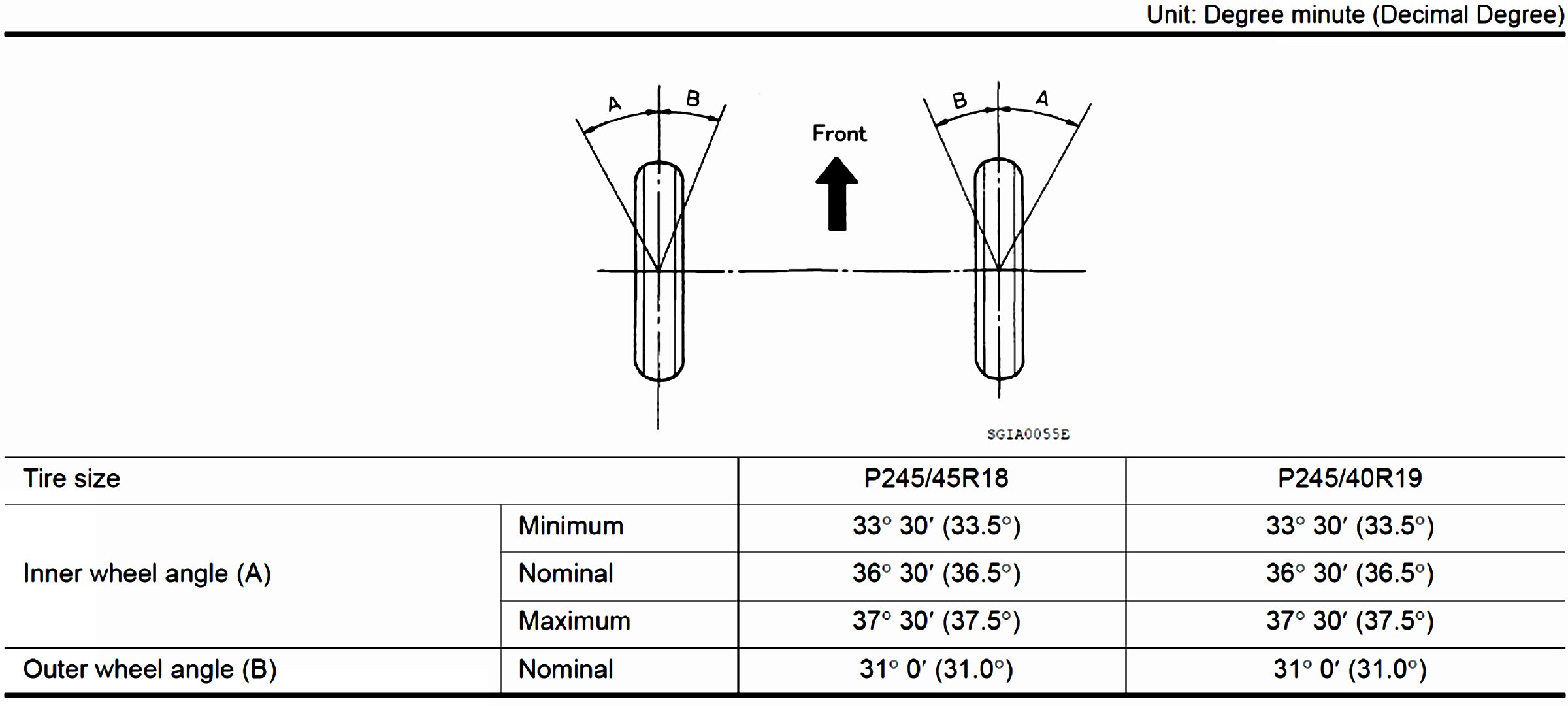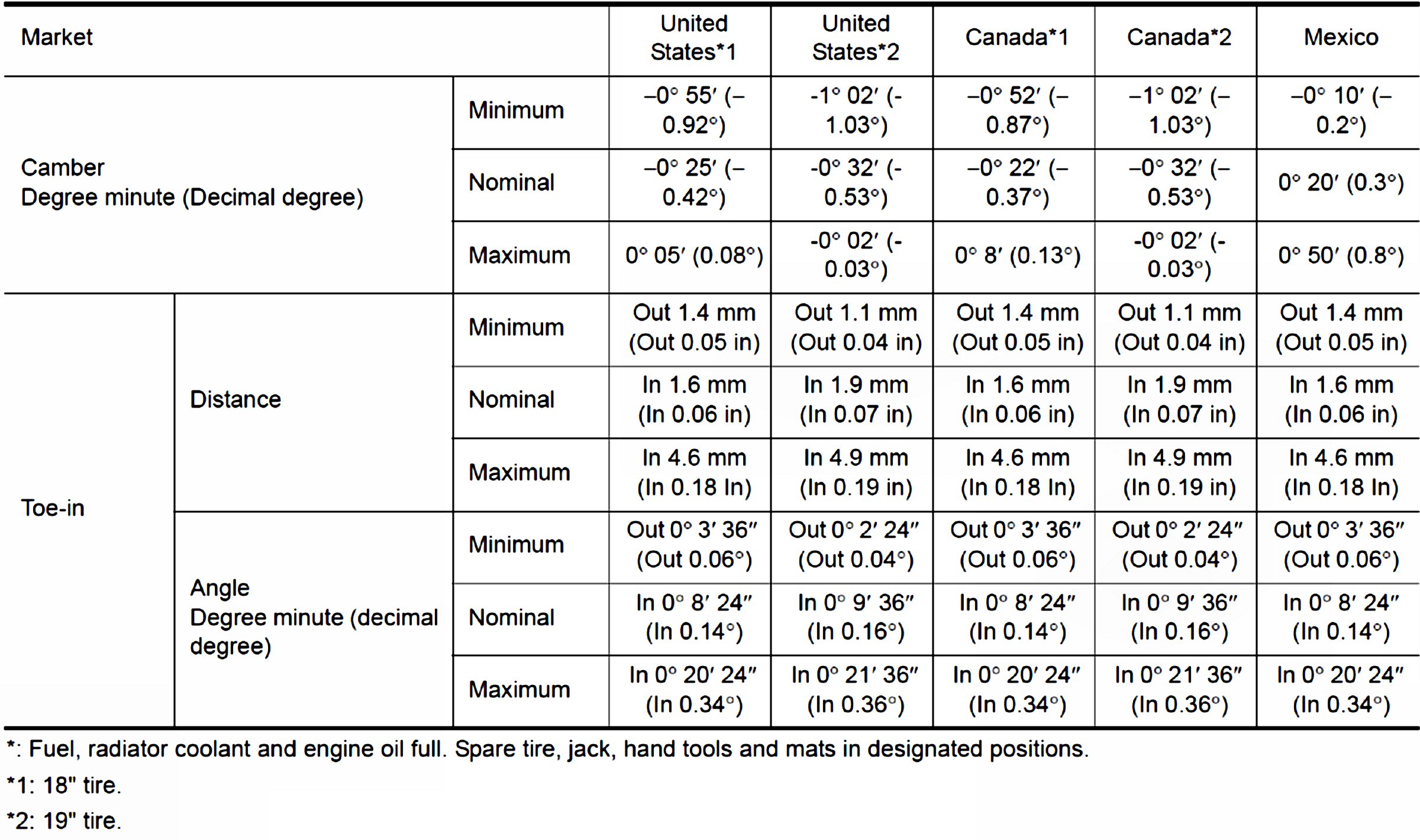 Wheel Alignment Specifications (Unladen)